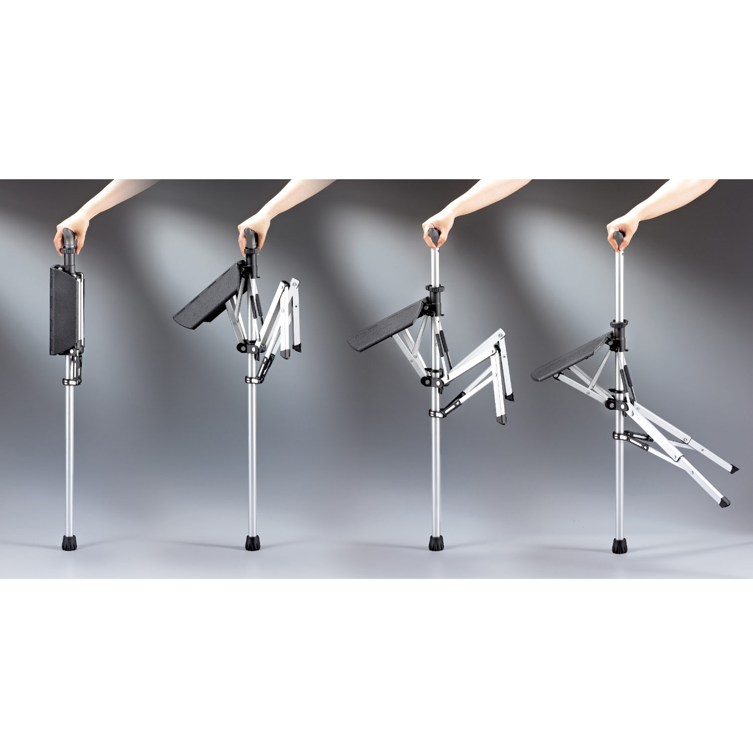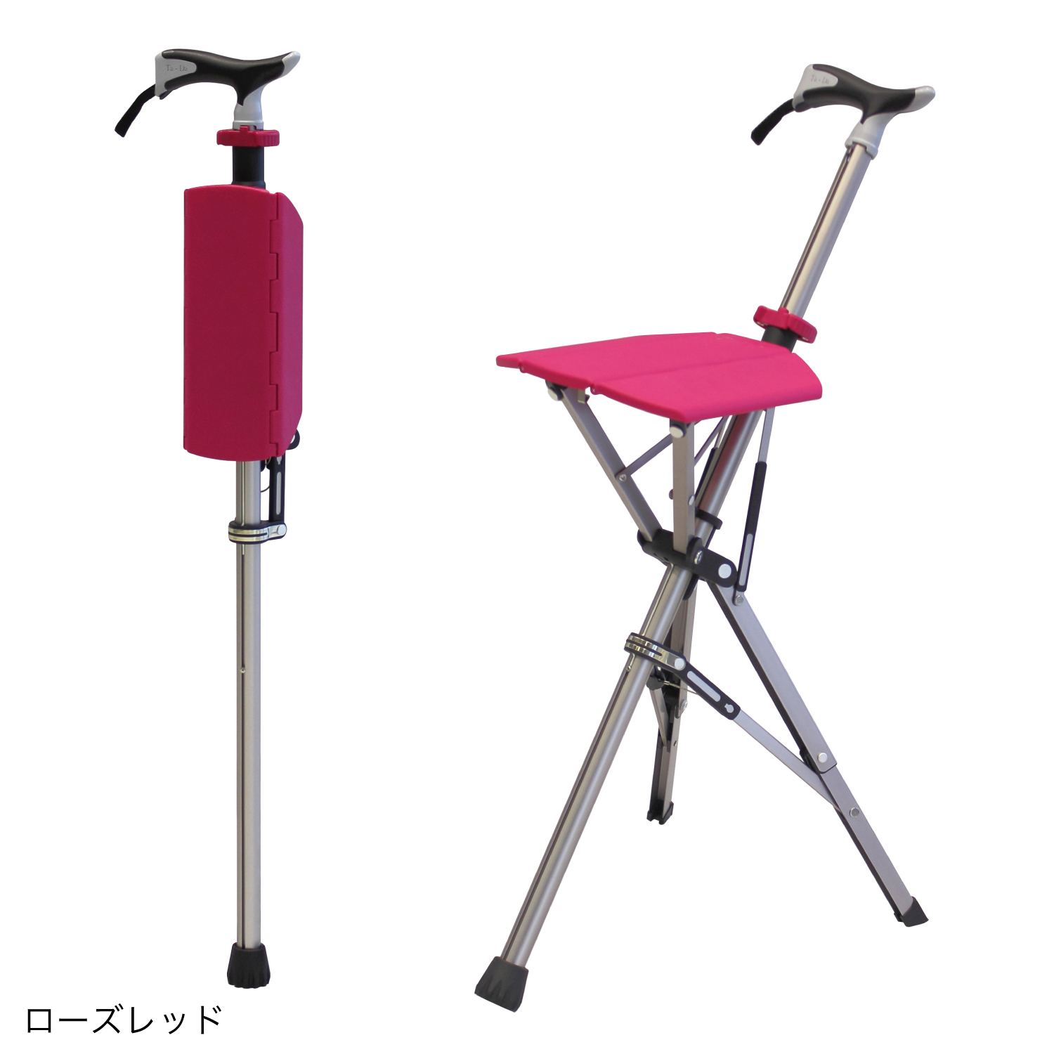 杖から椅子へ、椅子から杖へ、いつでも使える新感覚チェア。 杖が椅子にワンタッチで早変わりするステッキチェア。お出かけのとき、ランチ行列の待ち時間、趣味のゴルフ観戦などのときに、いろんな場面で椅子としてすぐに使えます。選べる2サイズ、握りやすいグリップになりました。