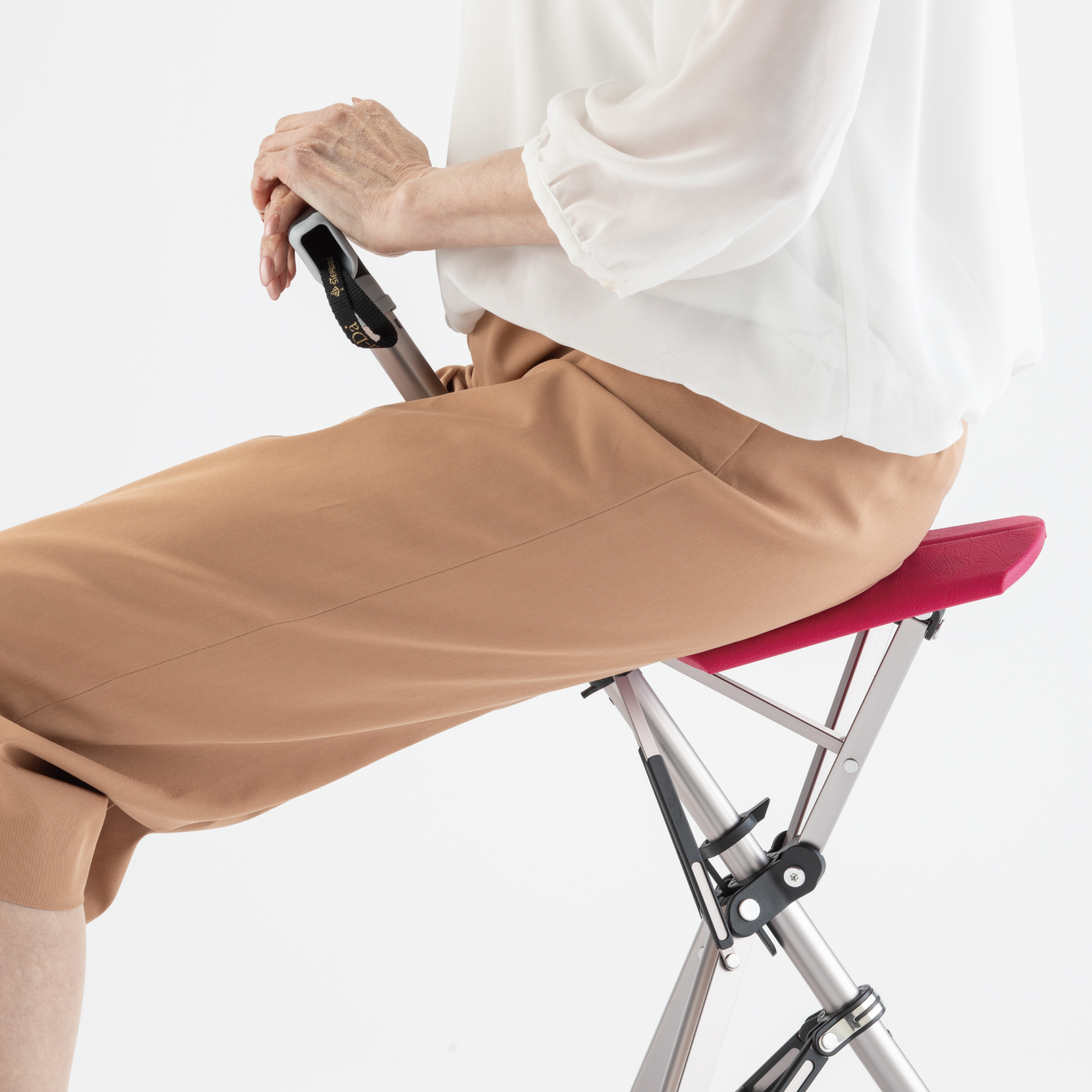 お出かけのとき、ちょっと疲れたら椅子に変えてひと休み。アクティブシニアの方のお出かけをサポート。