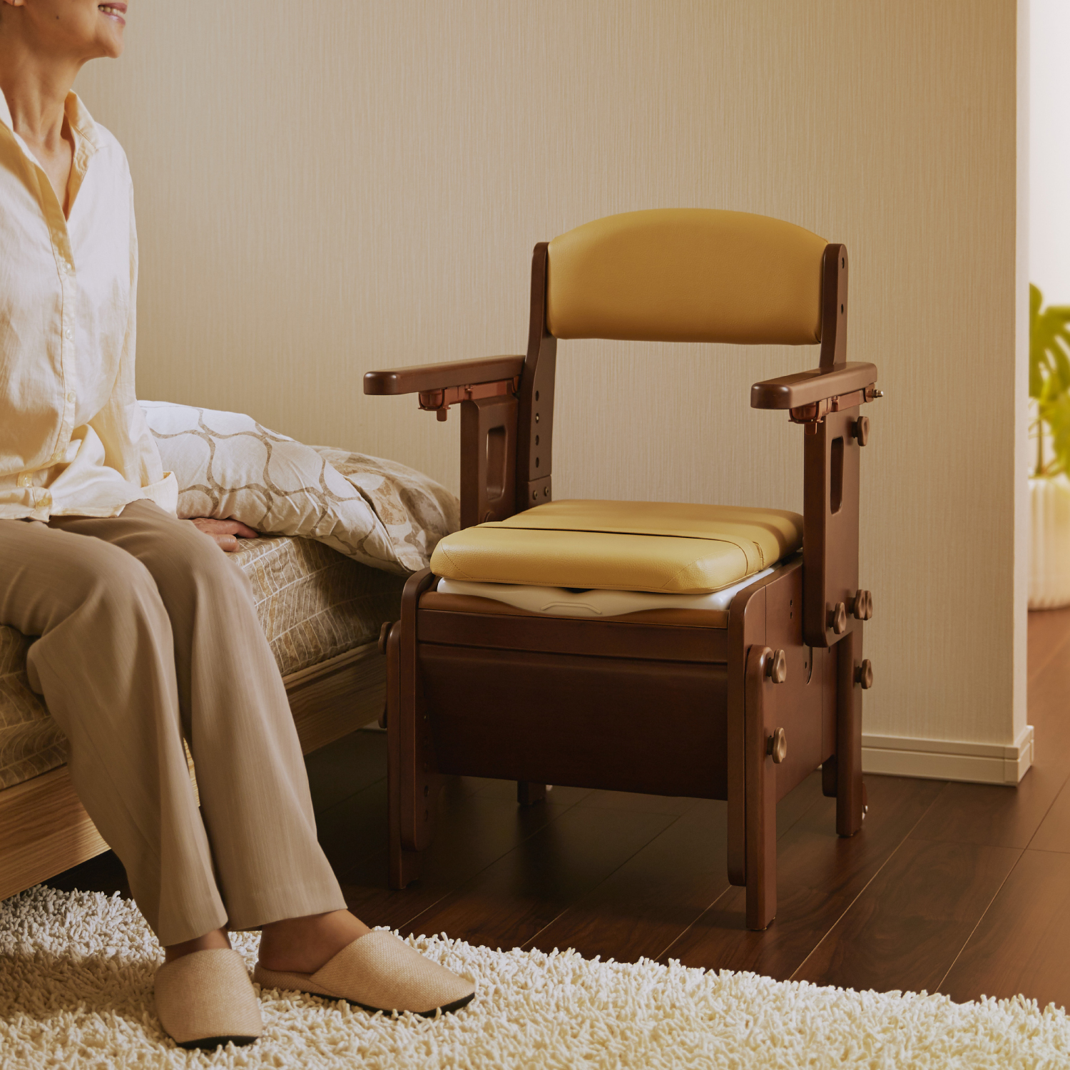 ひじ掛けはね上げがワンタッチで簡単。 | 使う方にも住環境にもちょうど良いサイズ! | |