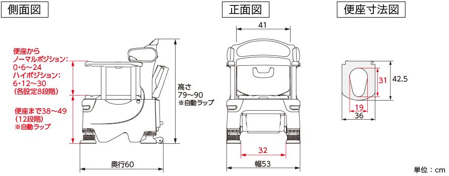 幅53×奥行60×高さ79~90cm(便座までの高さ:38~49cm)