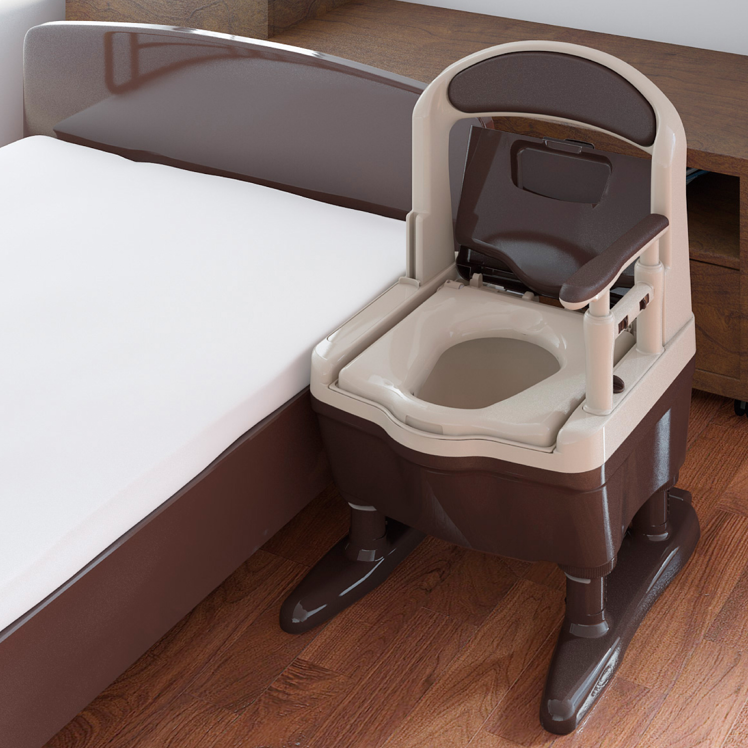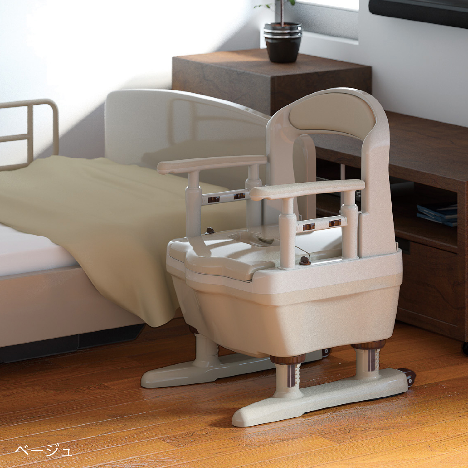 理想的な排泄姿勢に誘導し、ポータブルトイレ使用時の失敗(=尿こぼれ)を防ぐことで、高齢者の自尊心を守るだけでなく、後処理の介護負担も軽減します。
