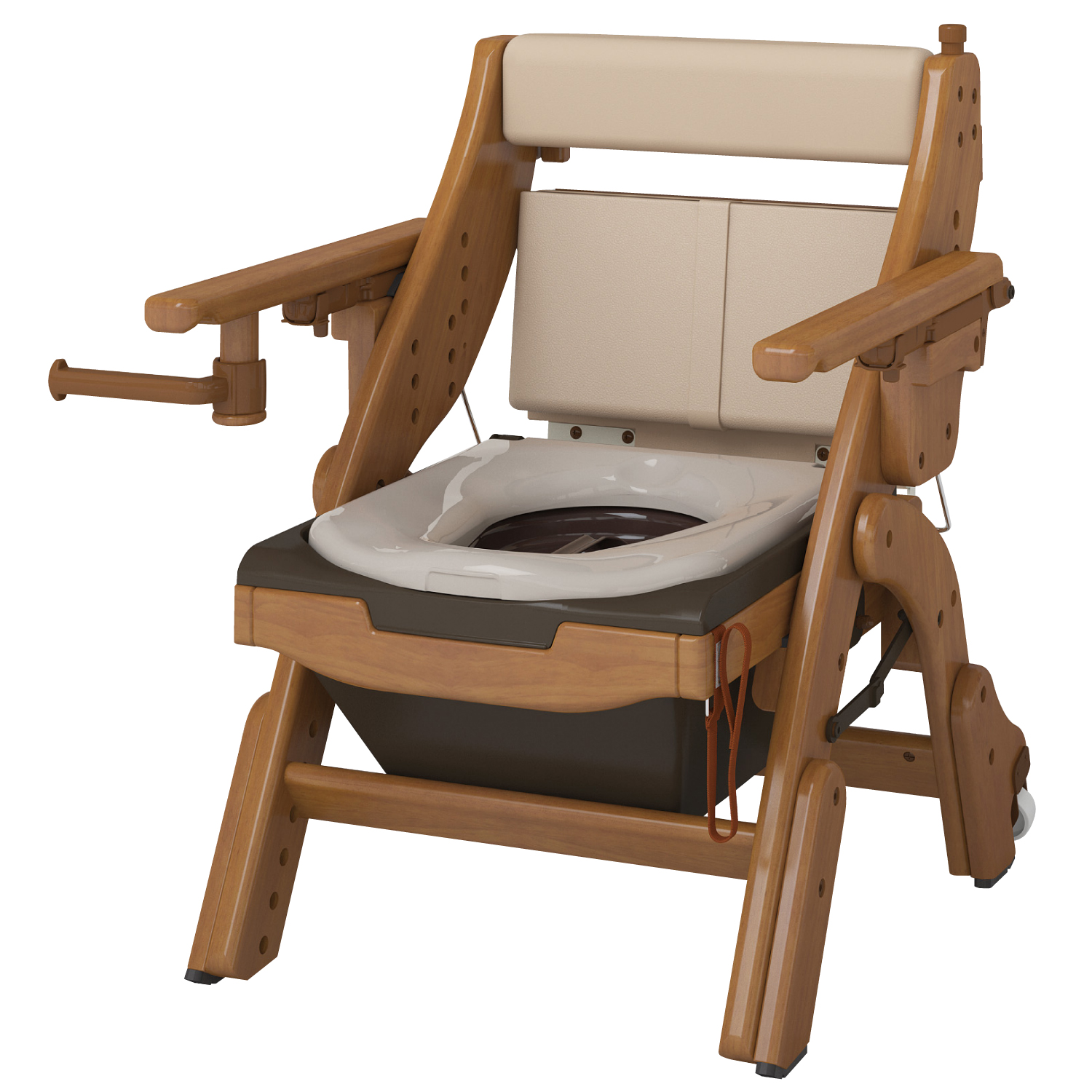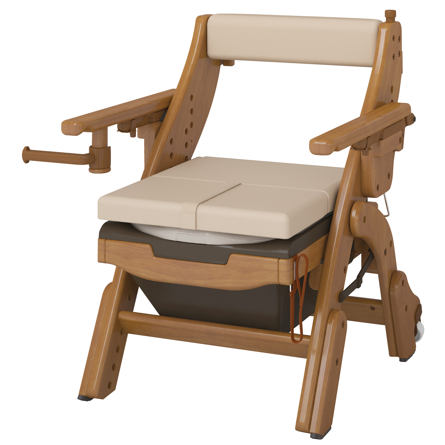 (本体)天然木[ラバーウッド]※表面加工:ウレタン樹脂塗装 (座面・背もたれクッション)合成皮革[PVC]・ウレタンフォーム (受け板・汚水受け・バケツ)PP 標準便座:(便座)PP ソフト便座:(便座)発泡EVA樹脂 ※便座は抗菌加工 (便座ベース板)PP