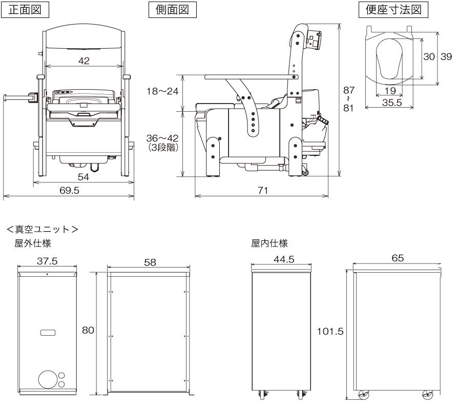 ※ 真空ユニット(屋外用・屋内用)は介護保険の対象品ではありません。 ※「キューレット」は「経済産業省 ロボット介護機器開発・導入促進事業」採択製品です。