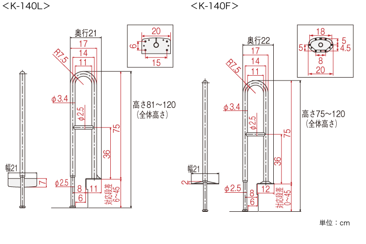 [140L]幅21×奥行21×高さ81~120cm [140F]幅21×奥行22×高さ75~120cm