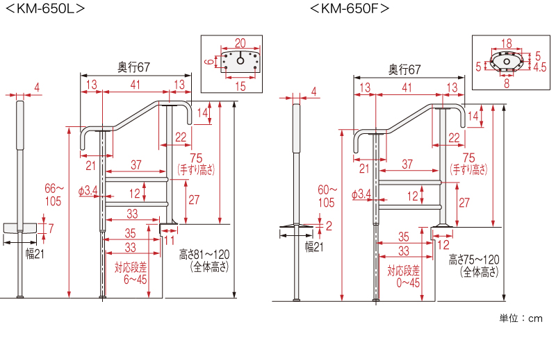 [650L]幅21×奥行67×高さ81~120cm [650F]幅21×奥行67×高さ75~120cm