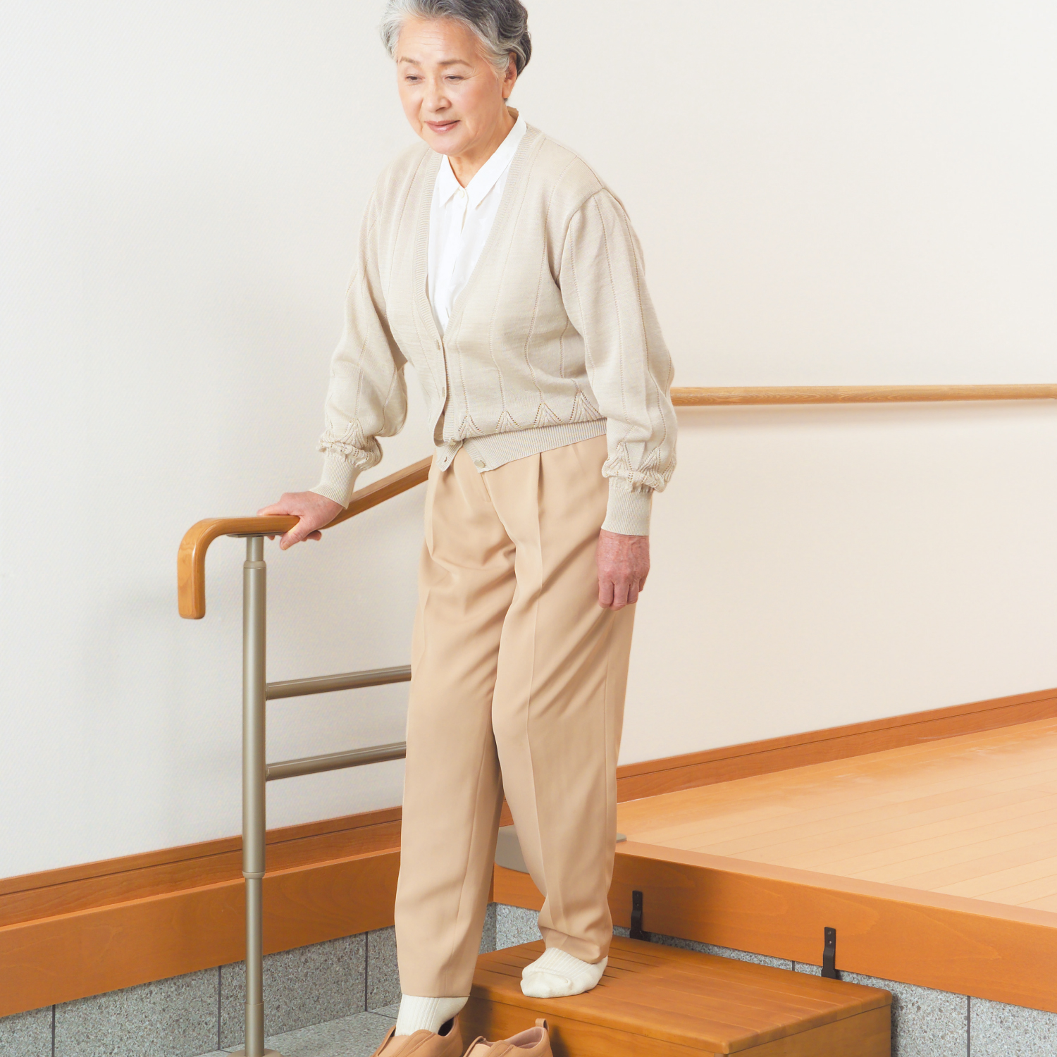 玄関のかまちに取り付ける、段差昇降をサポートする手すりです。