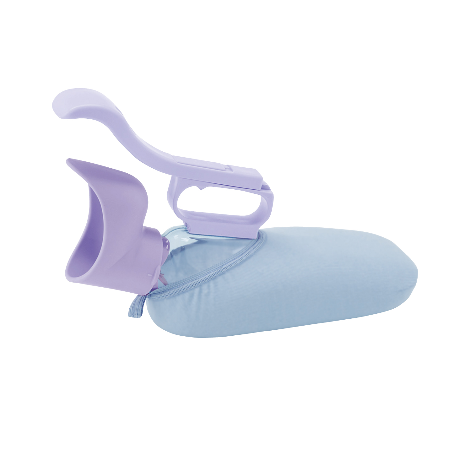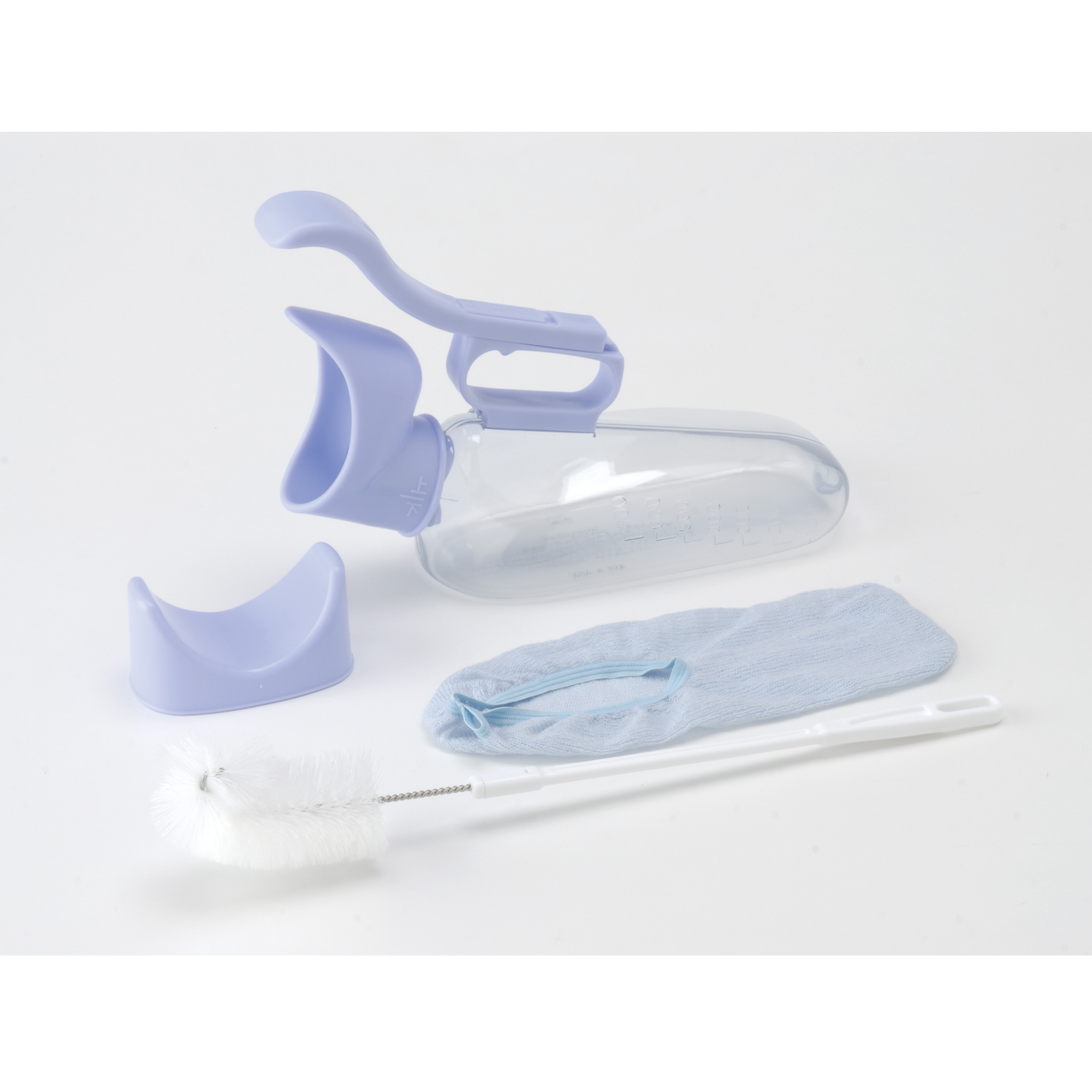 研究データに基づいて作られた尿器形状。ピッタリフィットして漏れにくい尿器です。グリップ付きで一人でも使用できます。