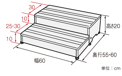 幅60×奥行55・60×高さ20cm (1段の高さ 10cm)