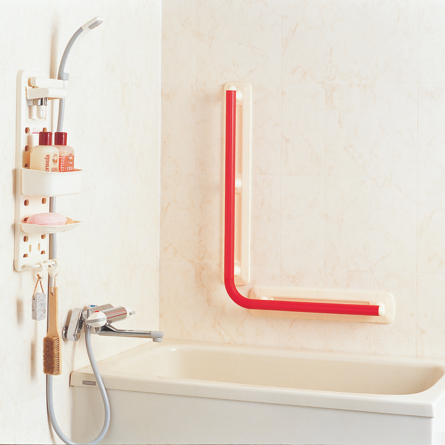滑りやすい浴室での移動や立ち座りをサポートする浴室壁用手すりです。