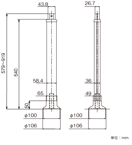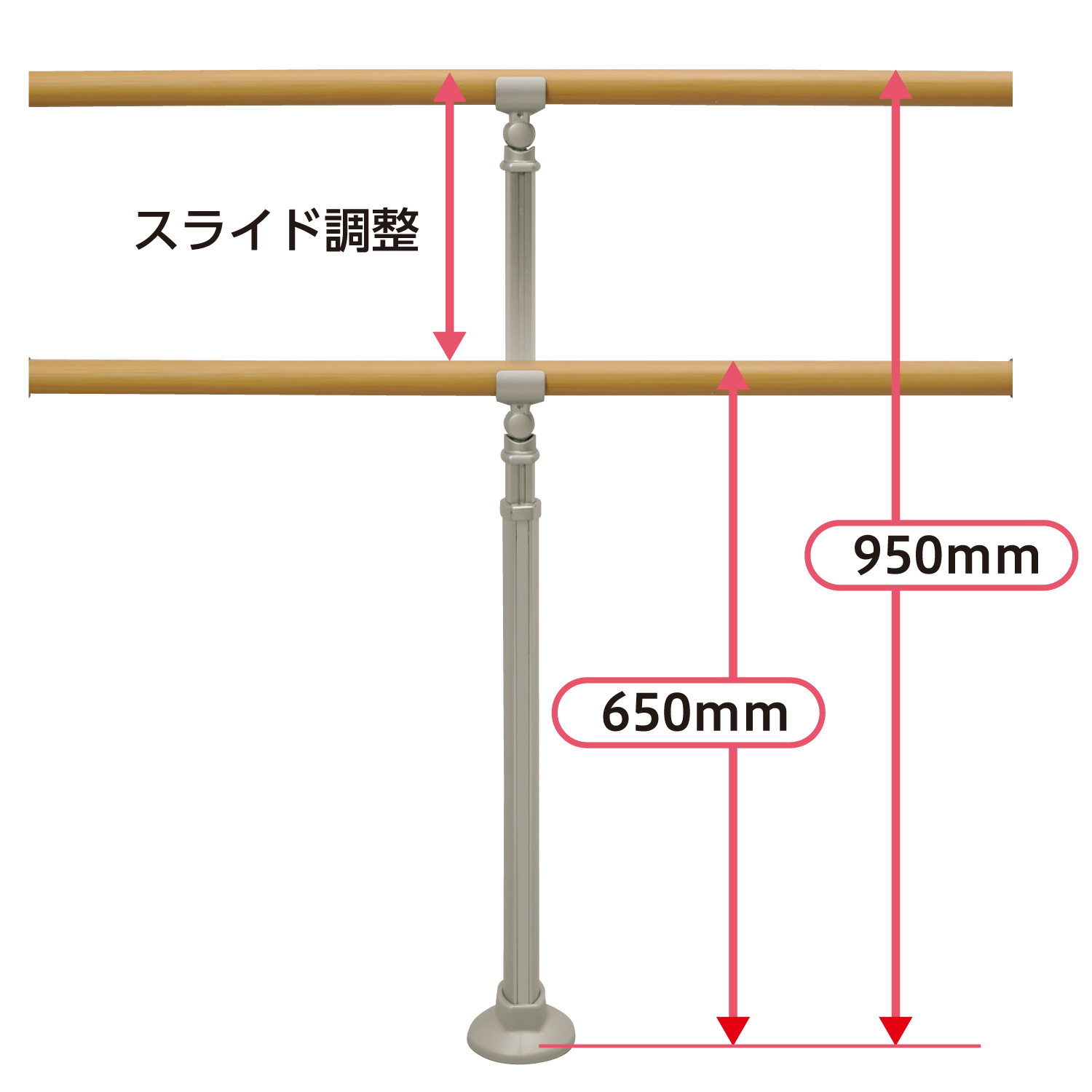 屋外用手すりの部材。手すり高さを無段階で調節できます。