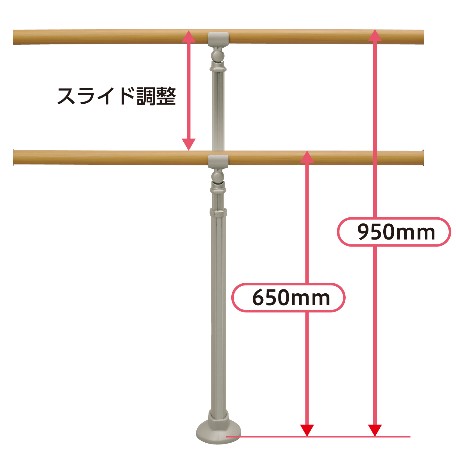 屋外用手すりの部材。手すり高さを無段階で調節できます。