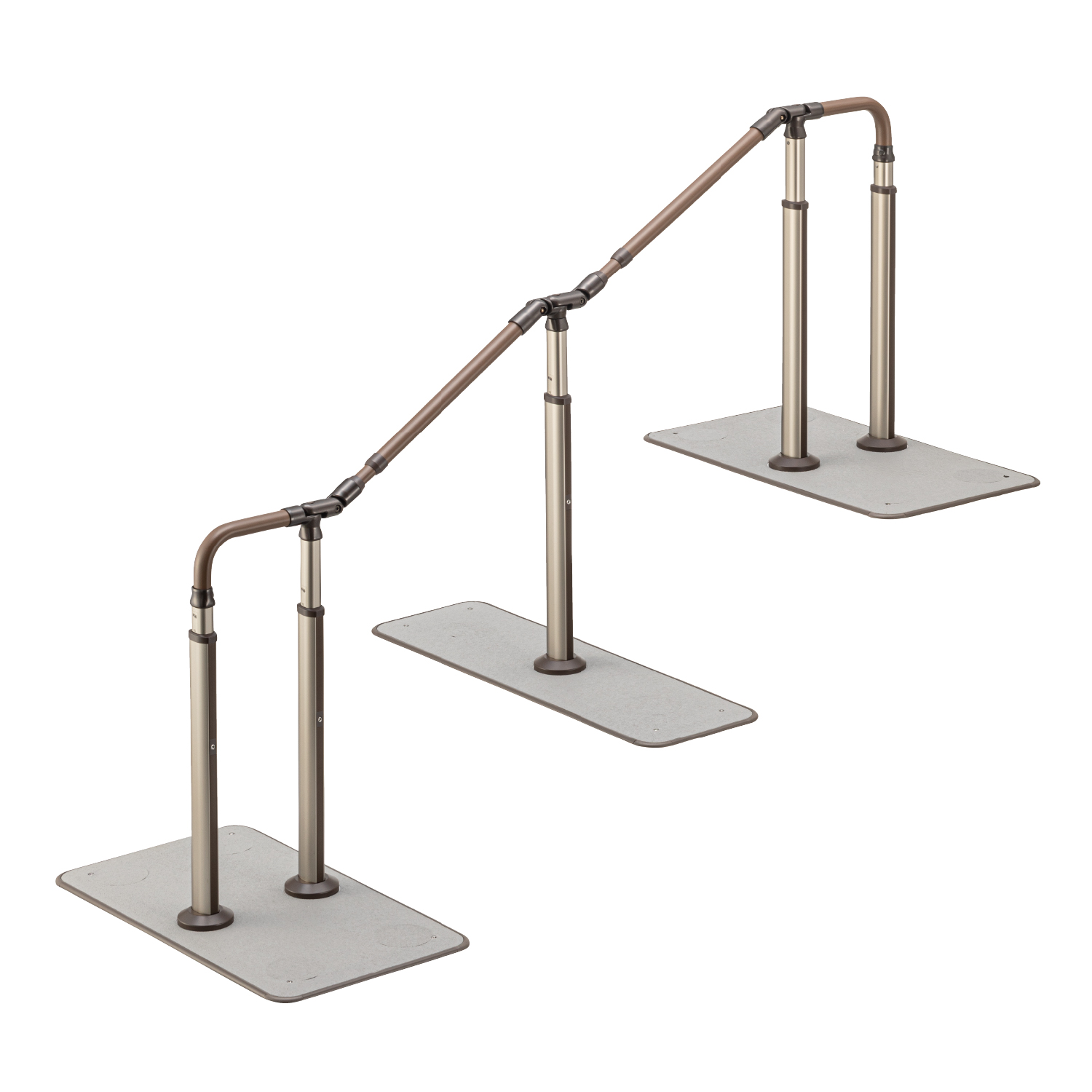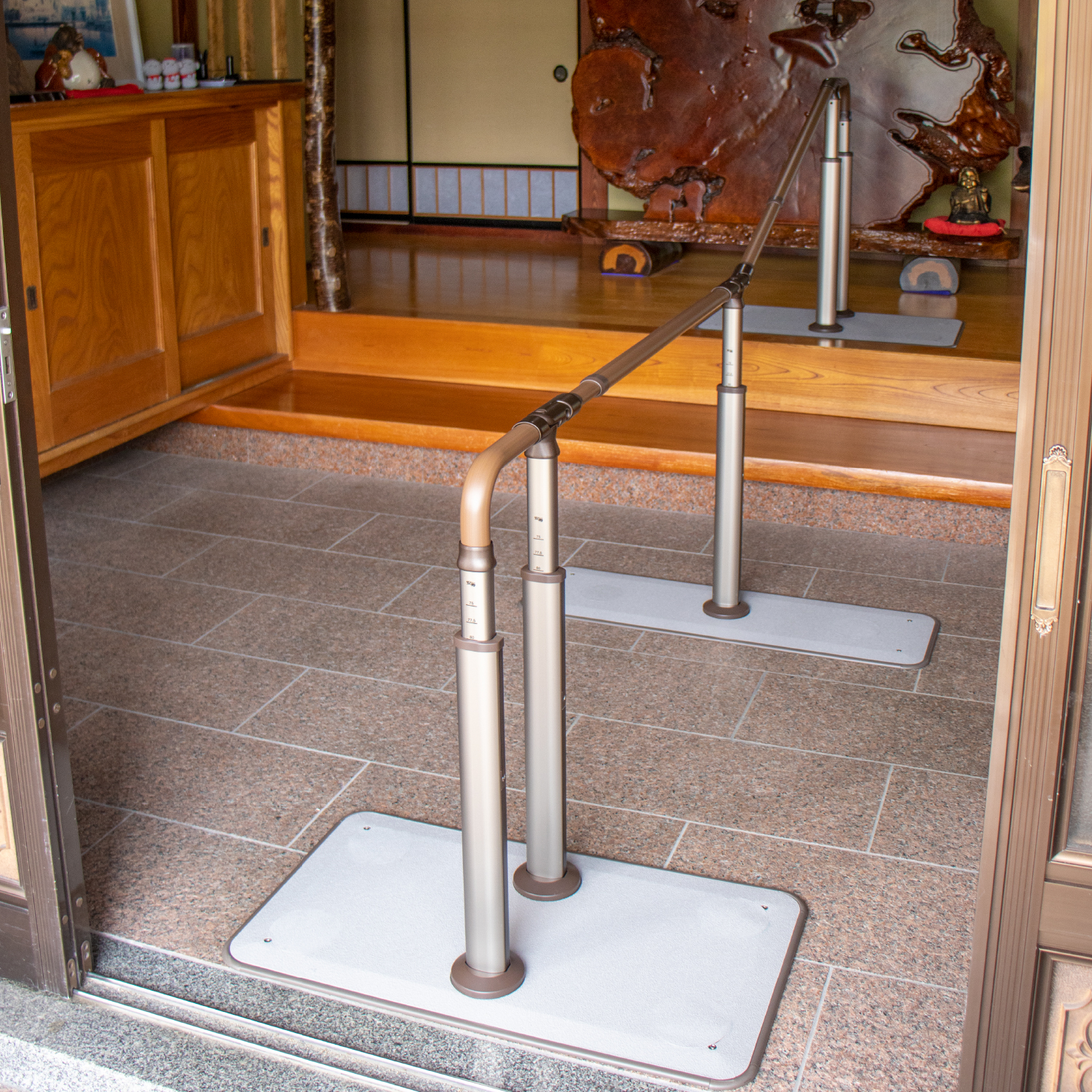 距離の長いポーチ部や玄関に設置。段差昇降や歩行を補助する据え置き手すり。