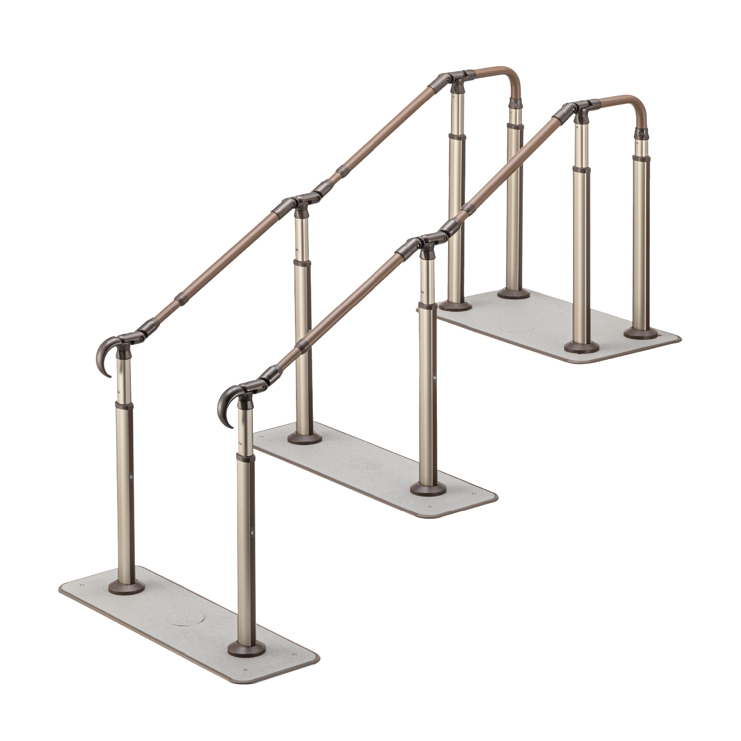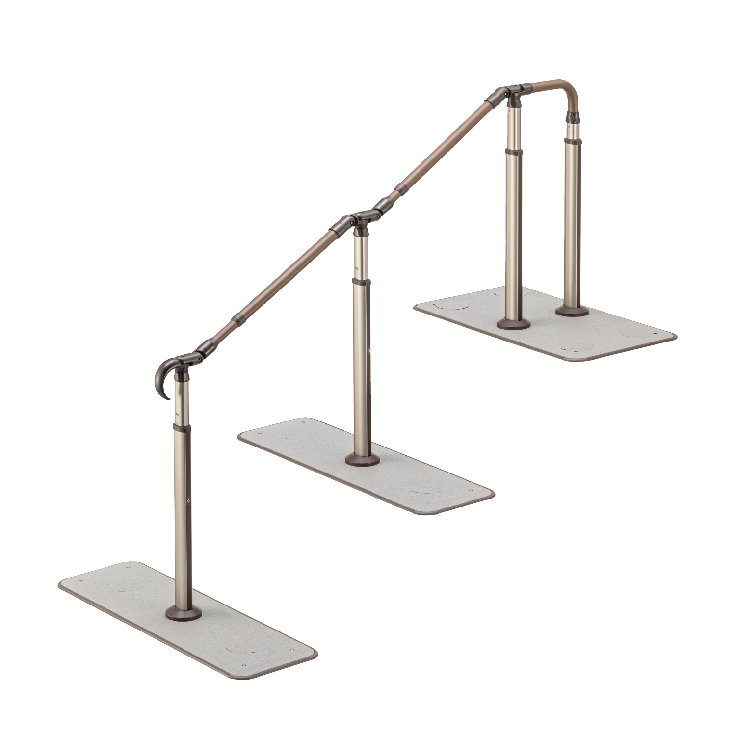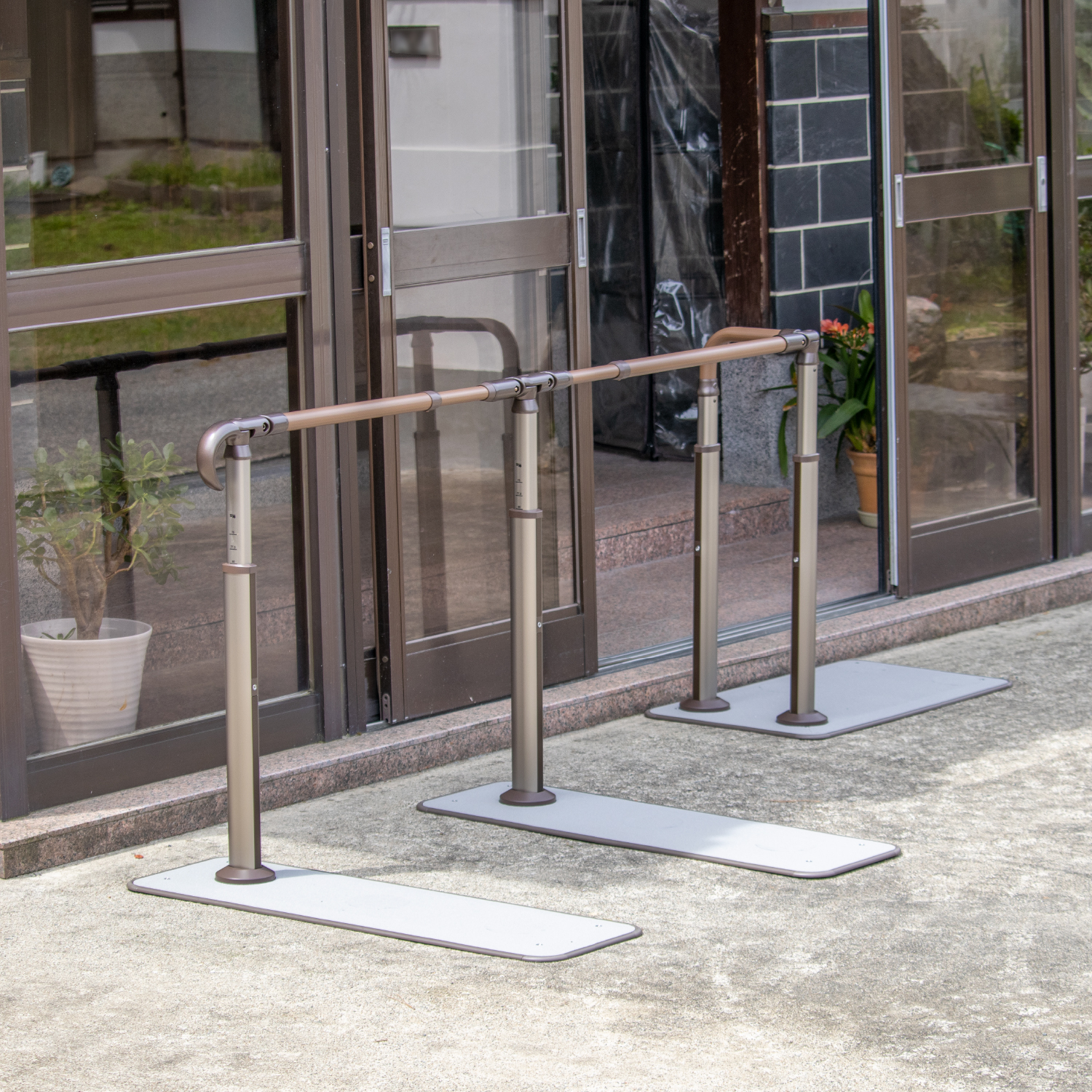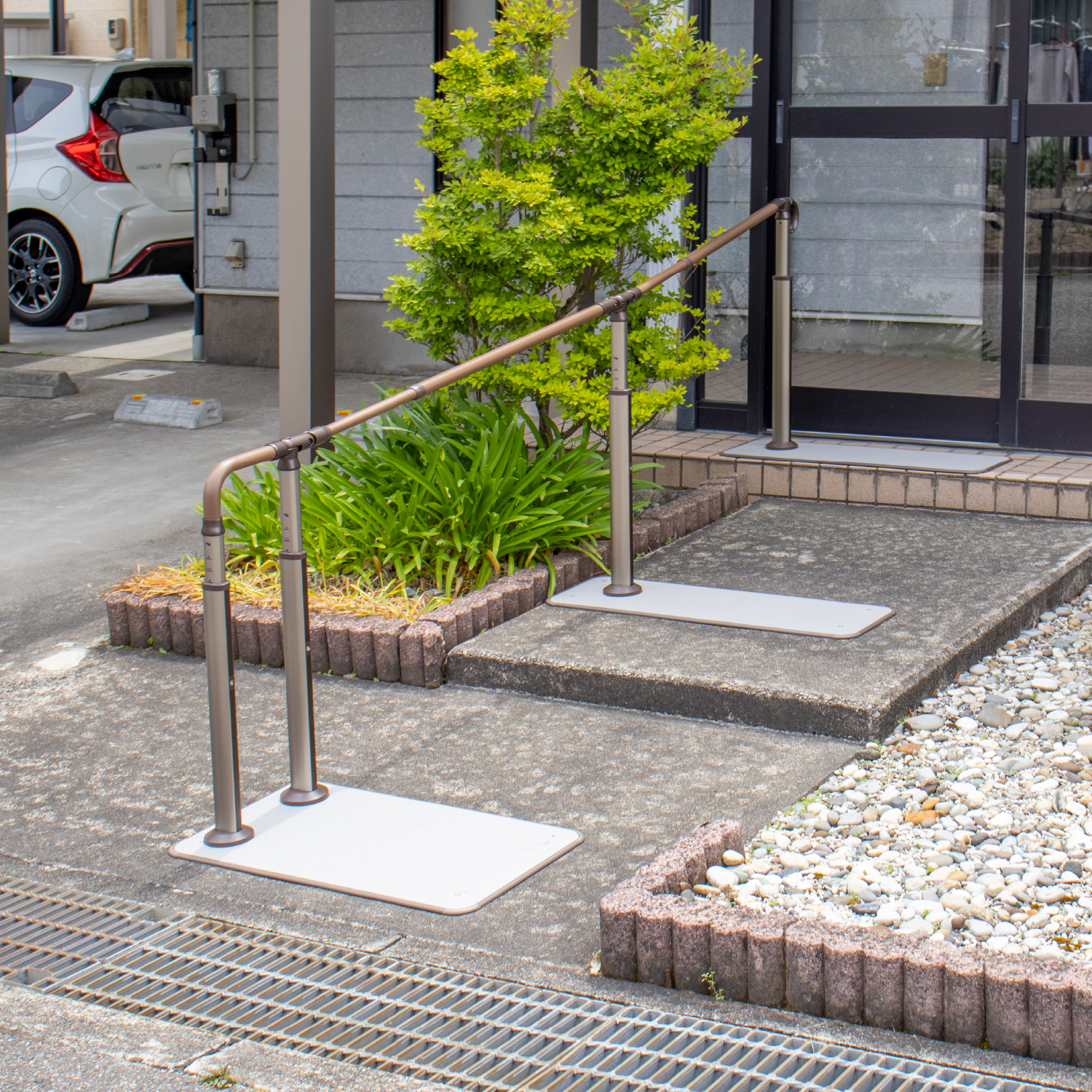 距離の長いポーチ部や玄関に設置。段差昇降や歩行を補助する据え置き手すり。