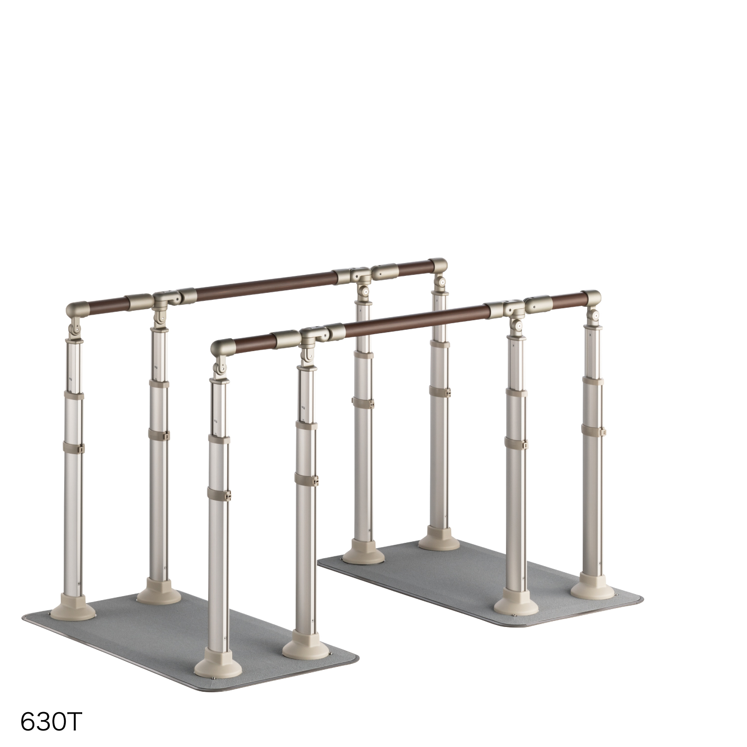 (手すり)ウッドパウダー混合半硬質樹脂/アルミニウム (支柱・高さ調節支柱)アルミニウム (ベースプレート・固定プレート)ステンレス (高さ調節固定ピン)PE/ステンレス (支柱キャップ)AES樹脂 (エンド支柱ブラケット・可変支柱ブラケット[可動部]・可変支柱ブラケット[回転部上下]アルミニウム合金(滑り止めシート)[表面]発泡ウレタンゴム[接着面]アクリル系接着剤 (端面保護カバー)塩化ビニル樹脂 (その他樹脂部)PP、ASA樹脂