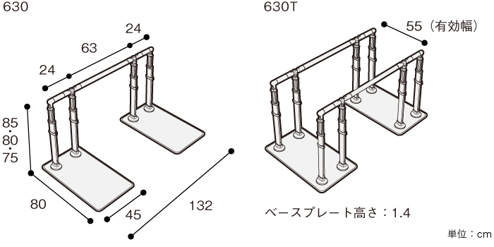幅80×奥行132×高さ75・80・85cm(3段階)