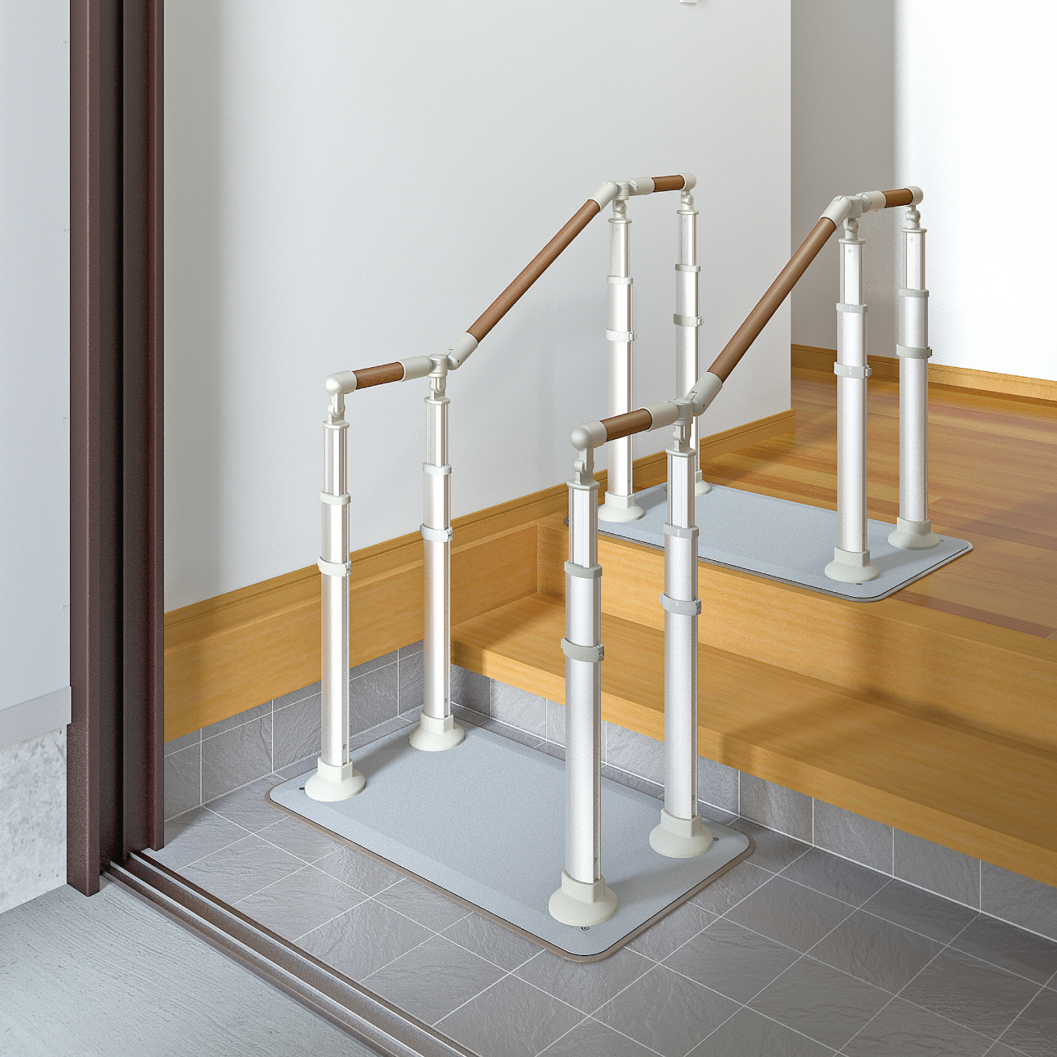 工事不要の据え置き型手すりで、短時間で手すりが設置できます。狭い玄関や小さい段差への設置に最適です。