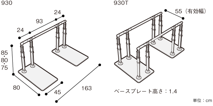 幅80×奥行163×高さ75・80・85cm(3段階)