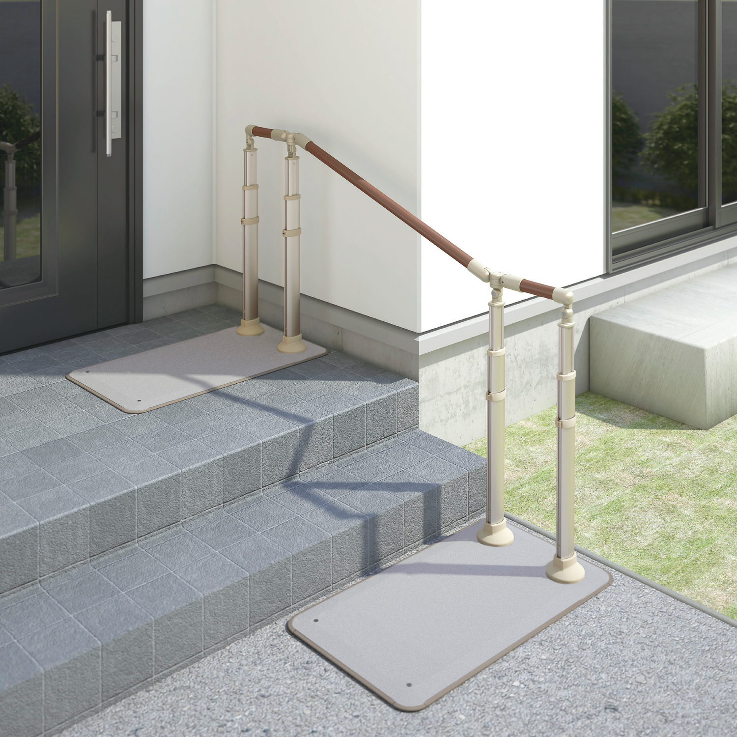 工事不要の据え置き型手すりで、短時間で手すりが設置できます。ポーチ部や玄関への設置に最適です。