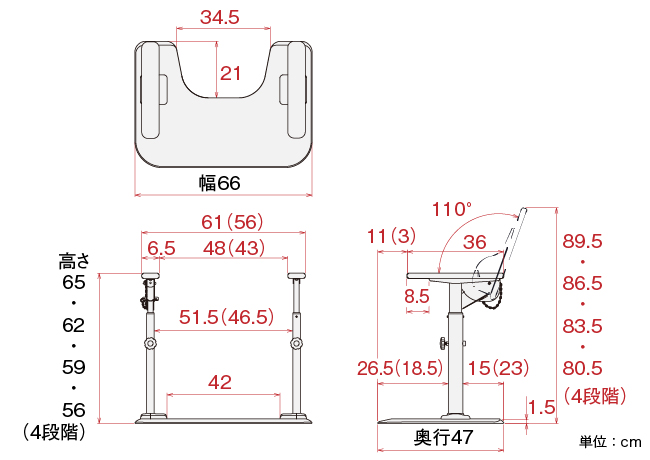 幅66×奥行47×高さ56・59・62・65cm(4段階)