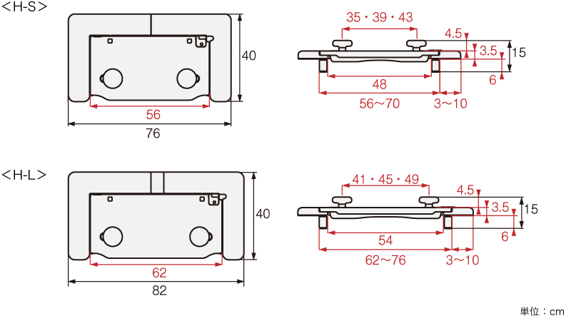 [H-S]幅76×奥行40×高さ15cm(ボード厚さ:3.5cm) [H-L]幅82×奥行40×高さ15cm(ボード厚さ:3.5cm)