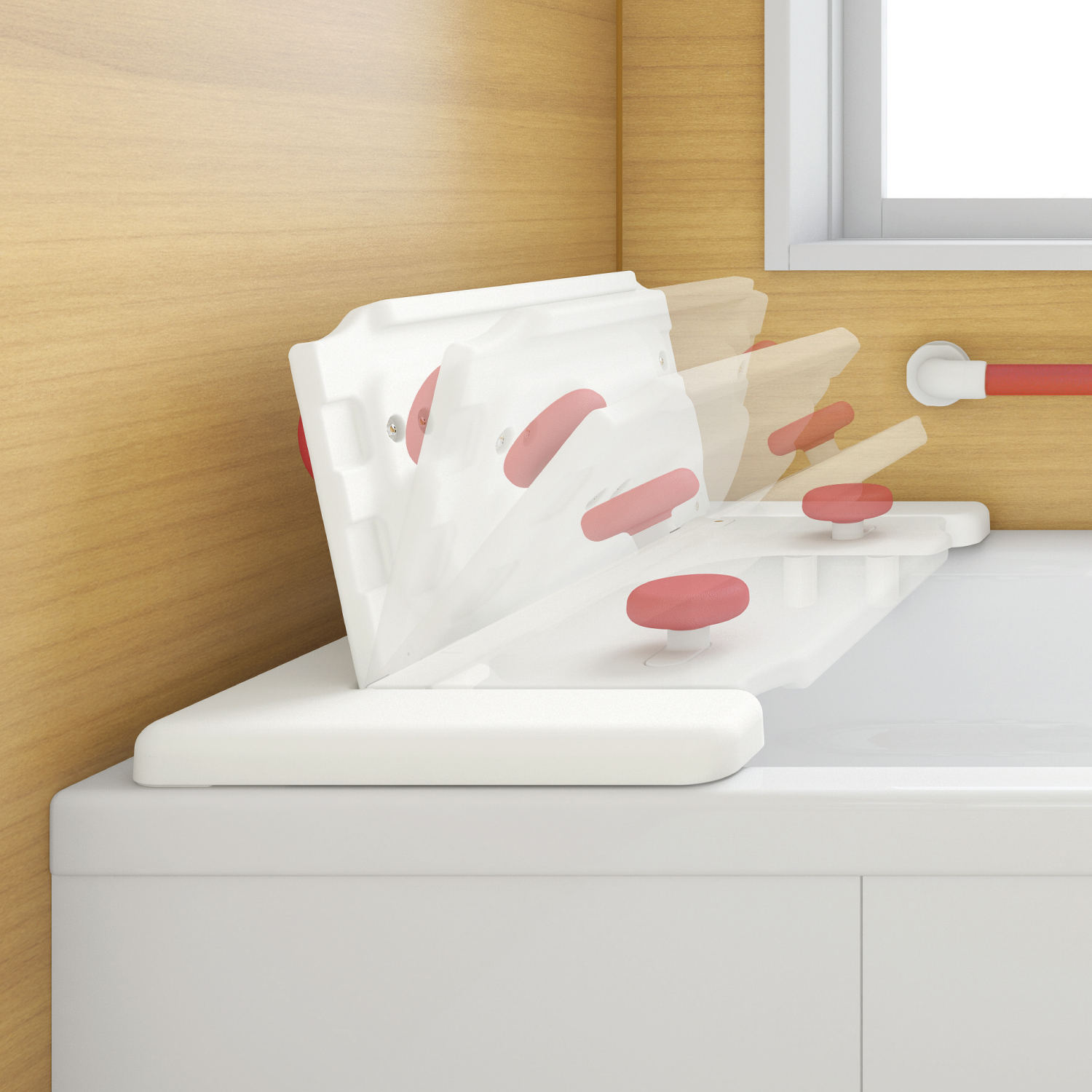 座面がはね上がる入浴台で、浴槽への出入りをより安心して行えます。自立入浴から介助入浴まで幅広い方の入浴をサポート。