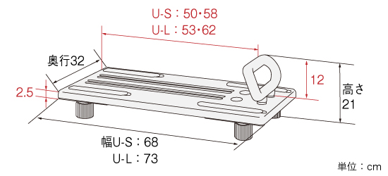 [U-S]幅68×奥行32×高さ21cm [U-L]幅73×奥行32×高さ21cm