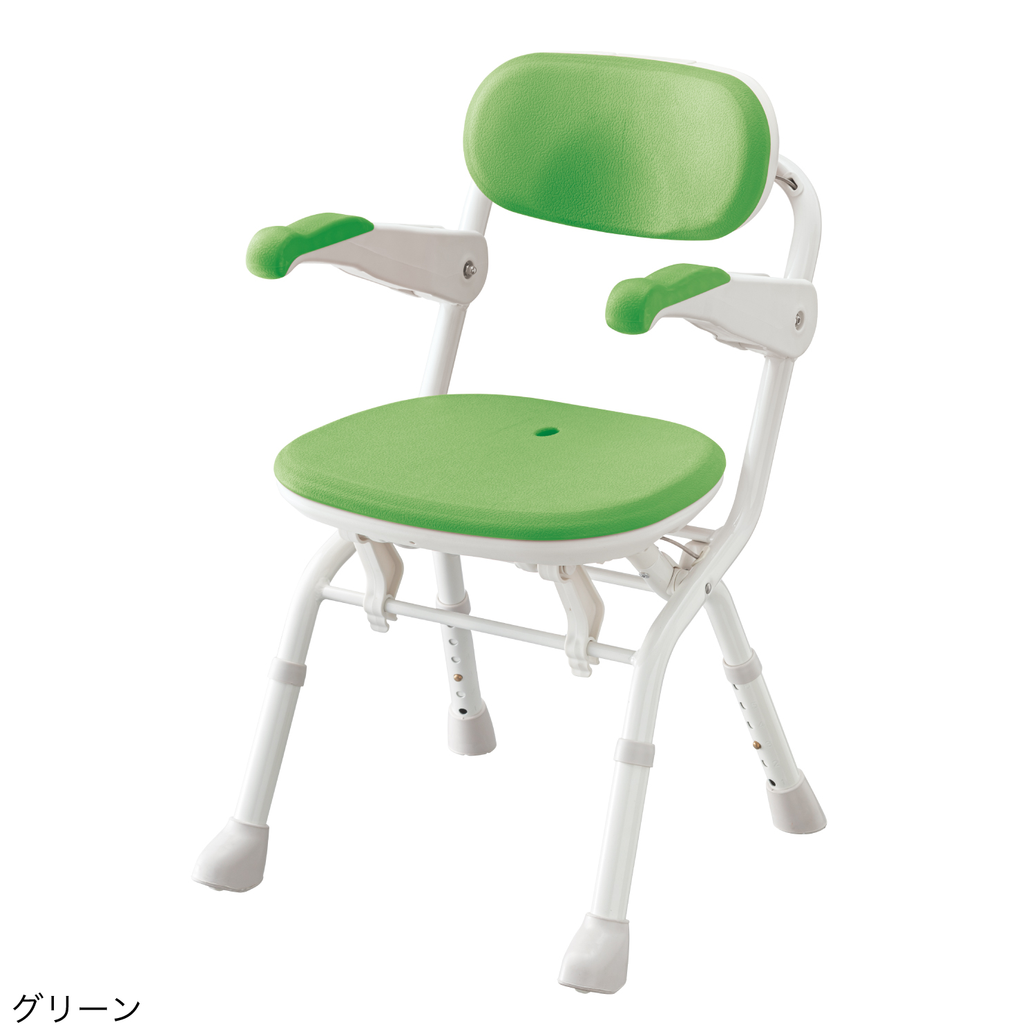 誰でも簡単に開閉できるシャワーベンチ。押して開く、引いてたたむ。いつでも、楽らくワンアクション。狭い浴室にも設置できるコンパクトタイプ。