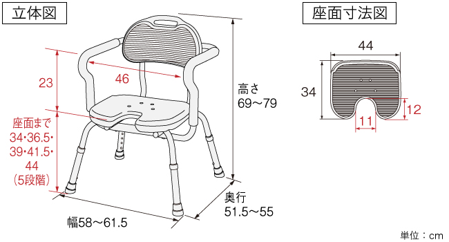 幅58×奥行51.5×高さ69~79cm (座面までの高さ:34~44cm)