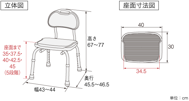 幅43×奥行45.5×高さ67~77cm (座面までの高さ:35~45cm)
