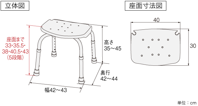 幅42×奥行42×高さ35~45cm (座面までの高さ:33~43cm)