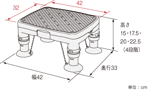 幅42×奥行33×高さ15・17.5・20・22.5cm(4段階)