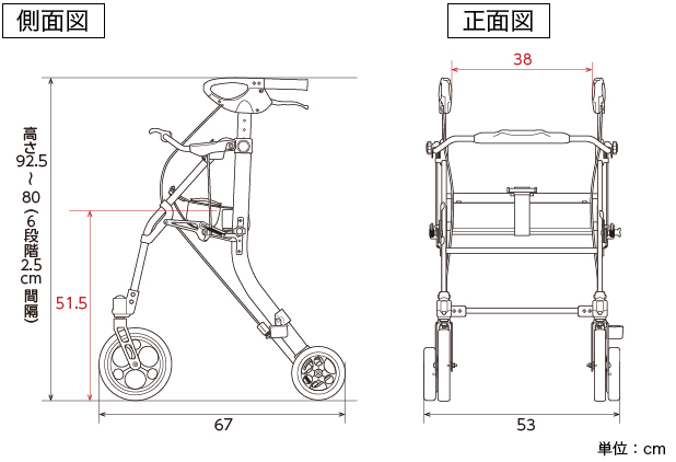 幅53×奥行67×高さ80~92.5cm(6段階) 座面高さ:51.5cm
