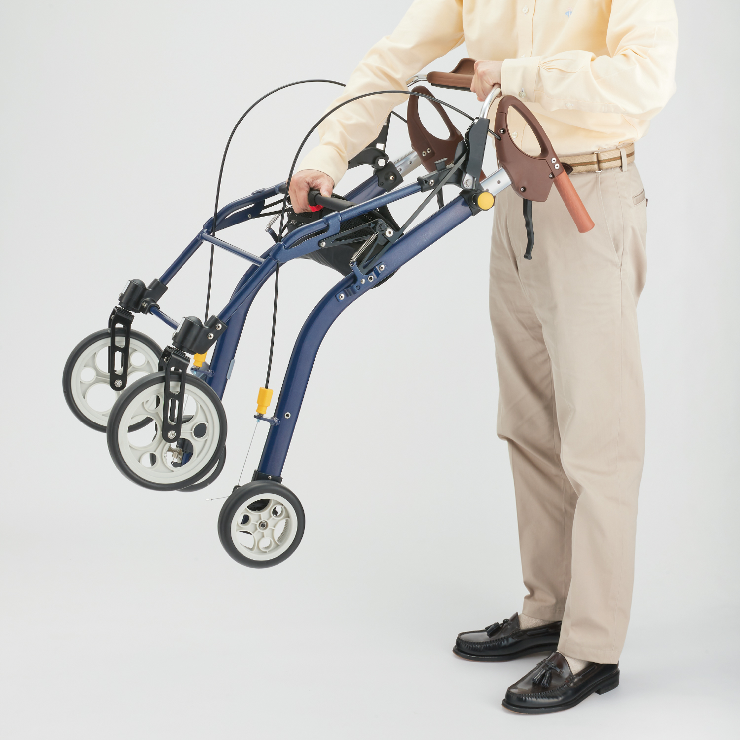 歩行車で最軽量クラスの4.1kgを実現。軽いので玄関の段差昇降や公共交通機関の利用時など様々な場面で持ち上げが楽になり、今まで不安だった外出が安心して行えます。