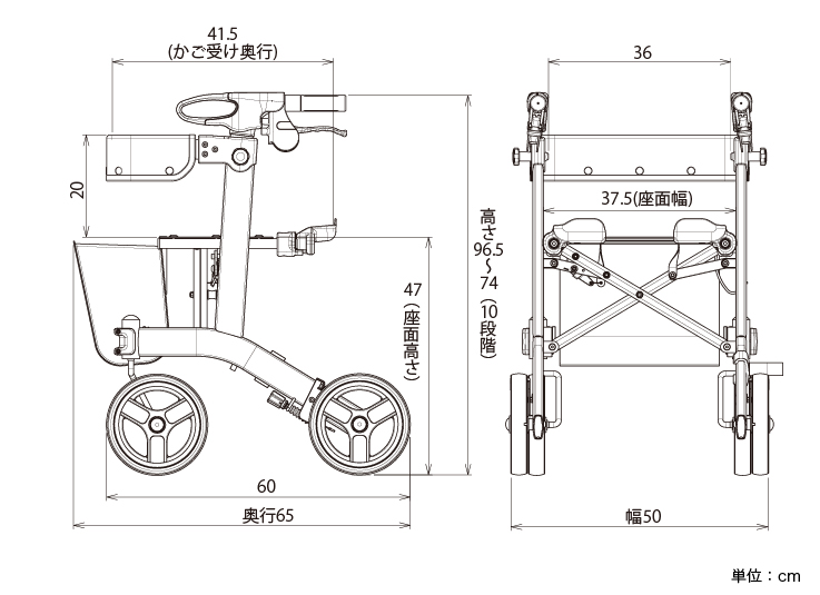 幅50×奥行65×高さ74~96.5cm(座面高)47cm 保冷バッグ容量11L