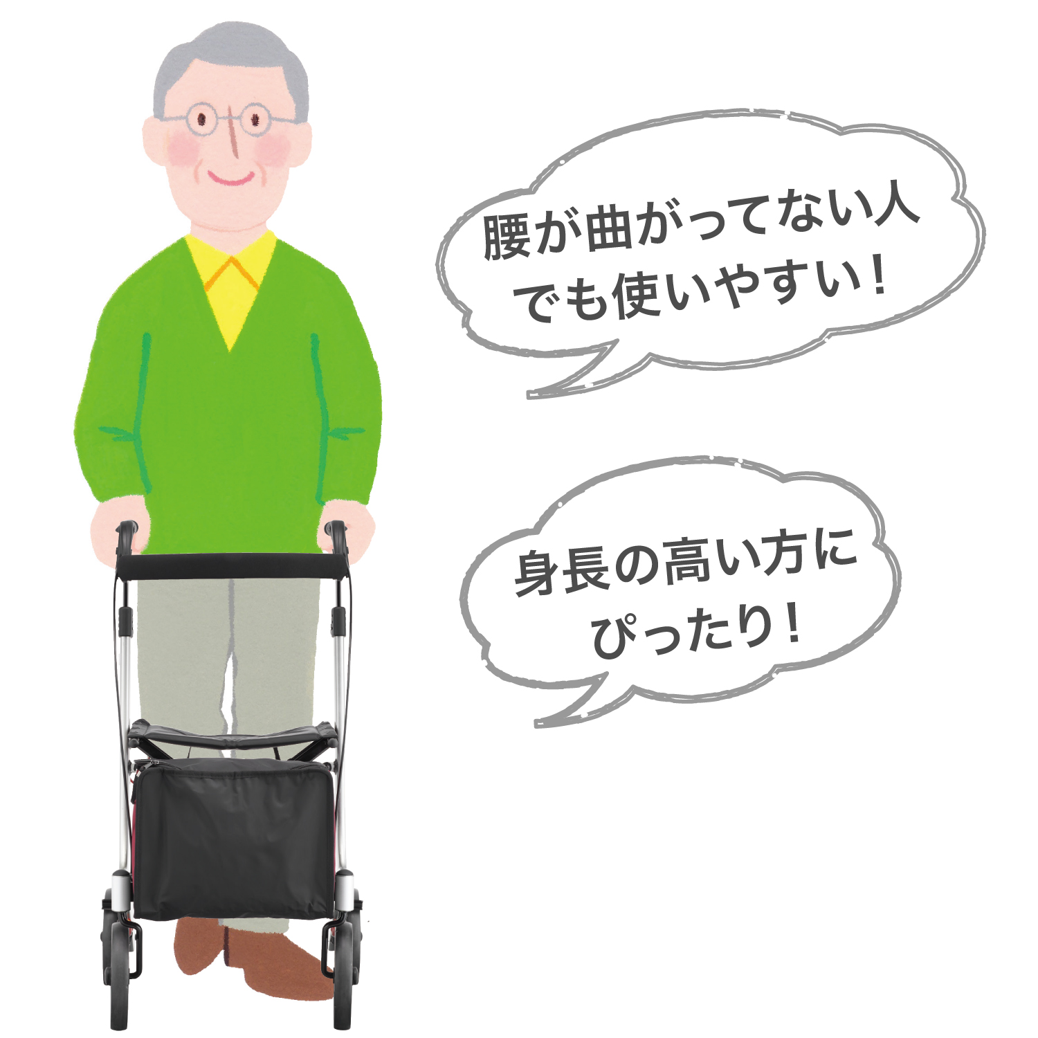 ハンドル高さ最大103.5cm!身長の高い方など、ハンドルが高いほうが歩きやすい方におすすめです。