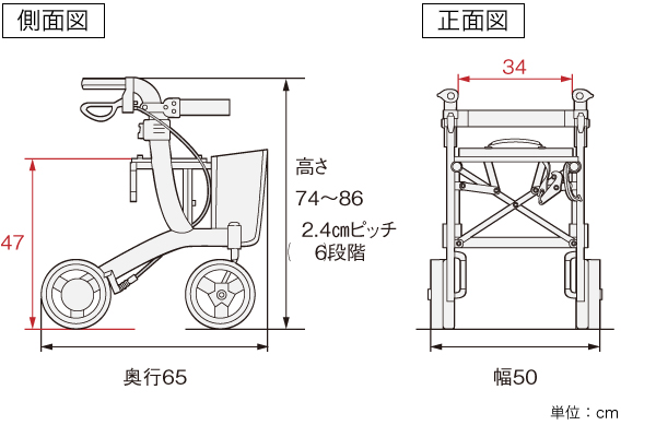 幅50×奥行65×高さ74~86cm(座面高)47cm(折りたたみ幅)28cm