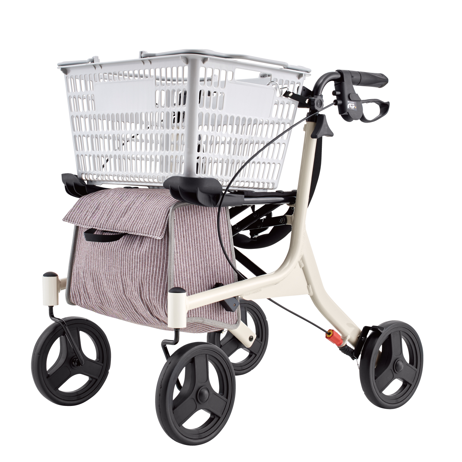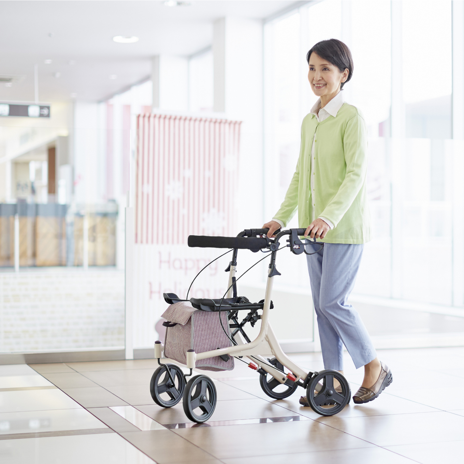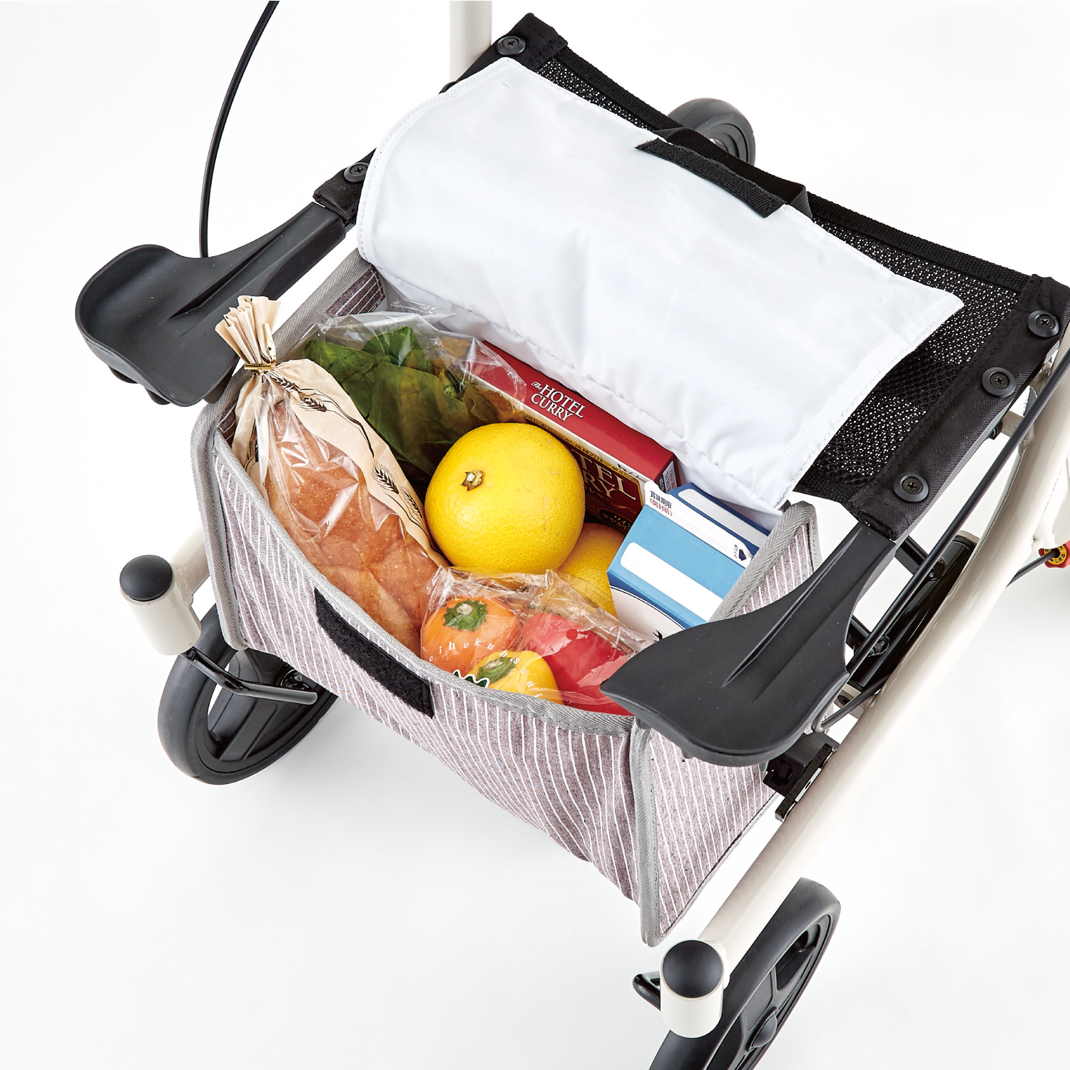 買い物かごを載せられるので、店舗のカートなしで歩行車のままお買い物ができます。