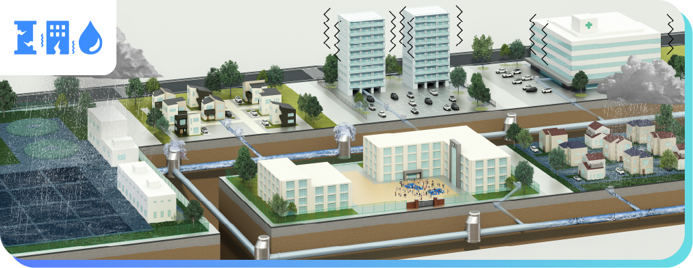 塩ビ製マスを中心に「洪水浸水対策」・「耐震防災対策」・「老朽化対策」を重点分野として様々な製品・システムを展開しております。