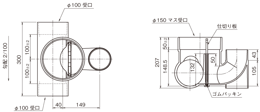 右・左・左右兼用など2種類以上の場合は、右タイプの製品図面を記載しています。