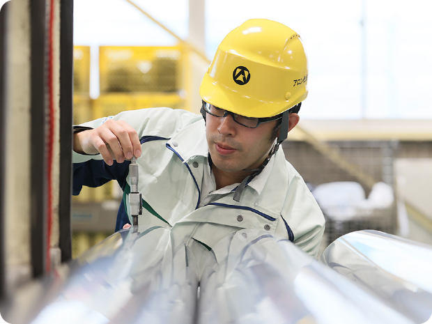 関東工場製品の公的認証規格(JIS、日本下水道協会規格等)の維持活動として、認証を受けた規格の定期的な更新や審査への対応の業務を担当しています。配属前から(品証へは新入配属では無いので、アロン化成の製品は既に知っています)管材製品について、ある程度把握していましたが、規格の知識は全くなかったので、一から勉強するのが大変でした。そんな私にも先輩や上司は丁寧に教えてくれたことが、とてもありがたかったです。その甲斐もあり、現在は製品の品質向上活動も担当し、クレーム対応や客先への不良品流出がないように努めています。