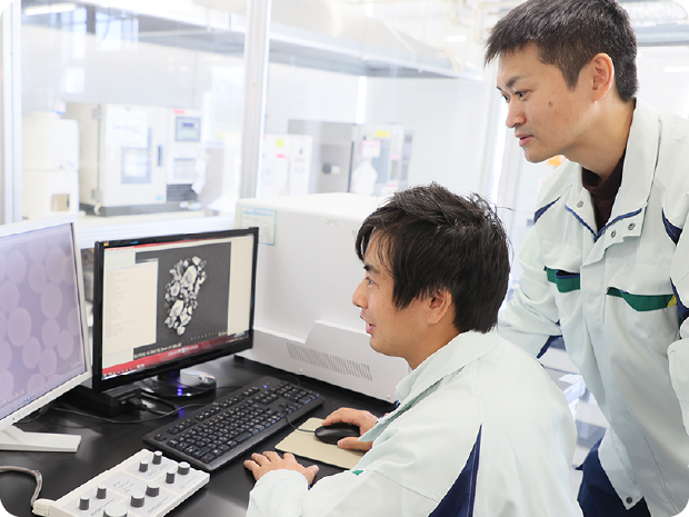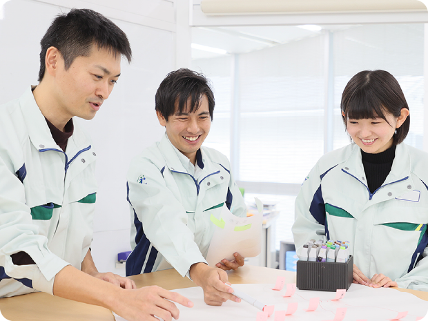 新製品の製造システムは、どれほど入念に考え導入しても完璧にはならないもの。だからこそ、工場で作業するスタッフの方々から意見を聞き出し、仕組みを見直すことで「作業しやすくなったよ」と喜んでもらえた時に喜びを感じますね。製品は多くの人たちの協力のもと生み出されています。その設備を担当するポジジョンには大きな責任を伴いますが、情熱を持って課題解決に臨んでいきたいです。
