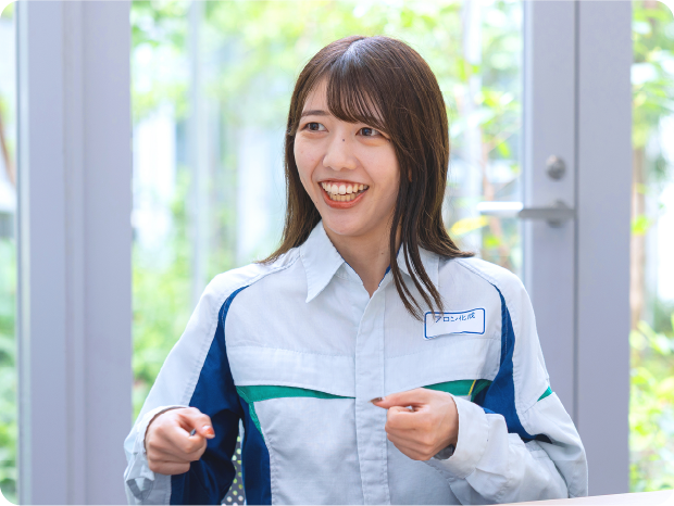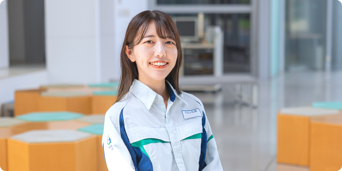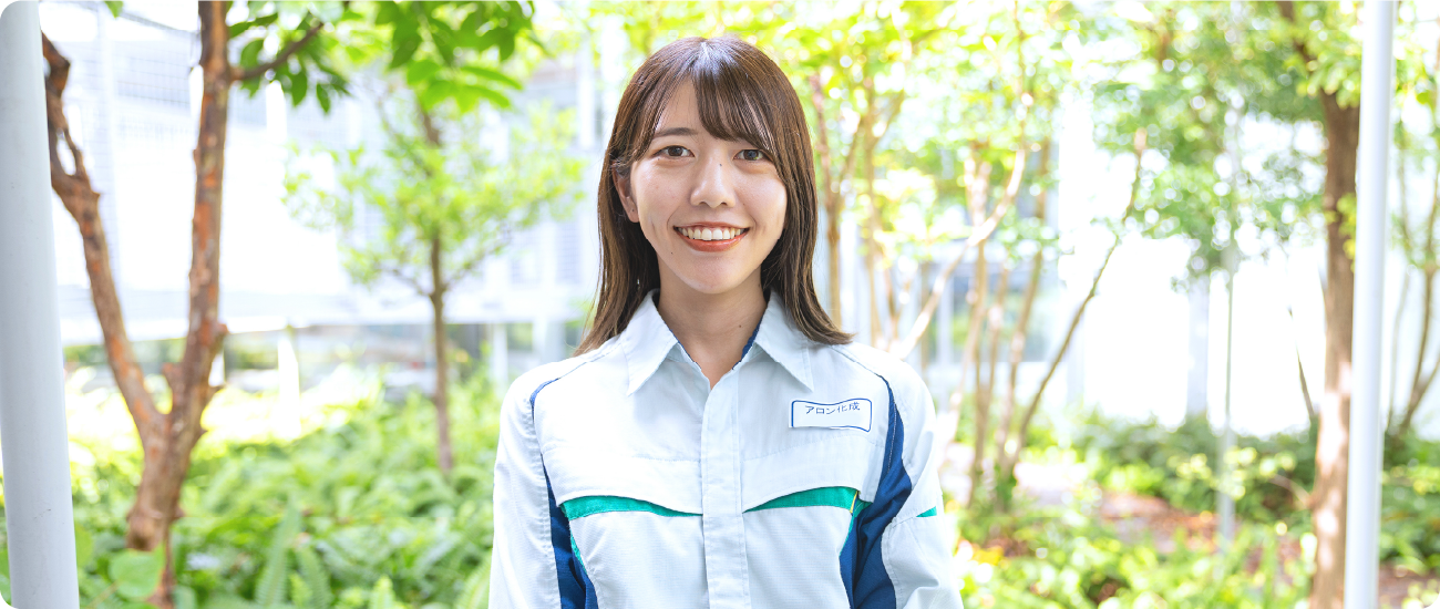 大学で化学を専攻したことがきっかけで化学に興味を持ち、化学系メーカーを幅広く調べていた中でアロン化成を知りました。私たちの日常に欠かせない製品のもととなる材料を手掛けていることを知り、親近感が湧きました。