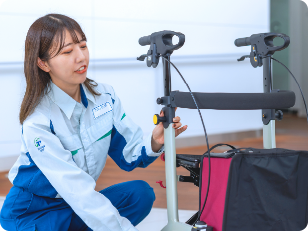 入社以来、歩行車という介護用品の製品開発を担当しており、現在で4年目になります。歩行車は、高齢者や身体が不自由な方々の「移動の自由」を支える重要な福祉用具です。そのため、私たちの仕事は単なる製品づくりではなく、人々の生活を支え、向上させることに直結していると感じています。