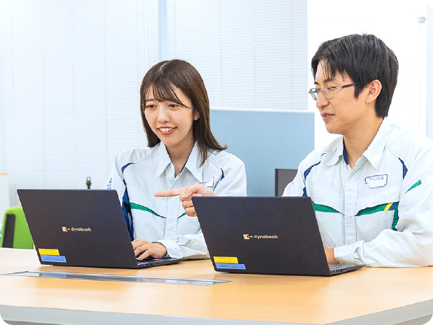 業務を進める上で大切にしていることは、「柔軟なコミュニケーション」です。例えば、行き詰まった場面では先輩に相談し、これまでの経験を元にアドバイスをいただくことで問題解決の糸口を探ることができます。定期的に進捗を共有し、チームで工程順守のために協力したり、自分からも気付いたことは積極的に提案したりすることが、より良い製品づくりにつながると感じています。