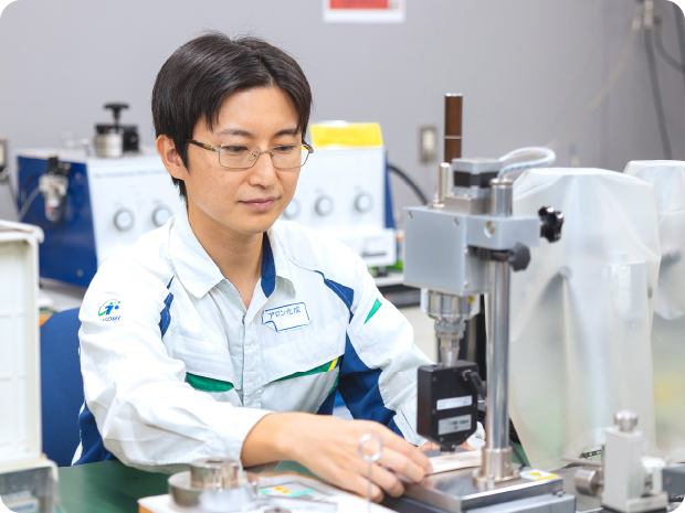 材料から製品まで幅広く携わることができるため、自分自身の「やりたいこと」の変化に合わせて、アロン化成の中で人生の舵を切り直すことができると感じた点も魅力でした。