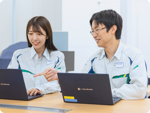専門的な材料の知識や考え方についても、先輩が丁寧に教えてくださり、定期的に勉強会も実施していただけるため、学ぶ機会は十分にあると感じています。