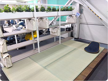 - 新橋から徒歩10分ほどのオフィスで約 100名の社員が働いています。オフィスはフリーアドレスで東日本支店と共用しています。