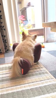 最近、さくらの体調に少しずつ変化が現れています。前脚のぐんにゃり感だけでなく、後ろ脚のふらつきも目立つようになり、体幹を保つことが難しくなってきました。仰向けにひっくり返ると自力で起き上がれず、寝たまま動けない状態になることもあり、困っているさくらの姿を見るたびに、「何かサポートできるものはないか」と思いながら介護用品を探していました。